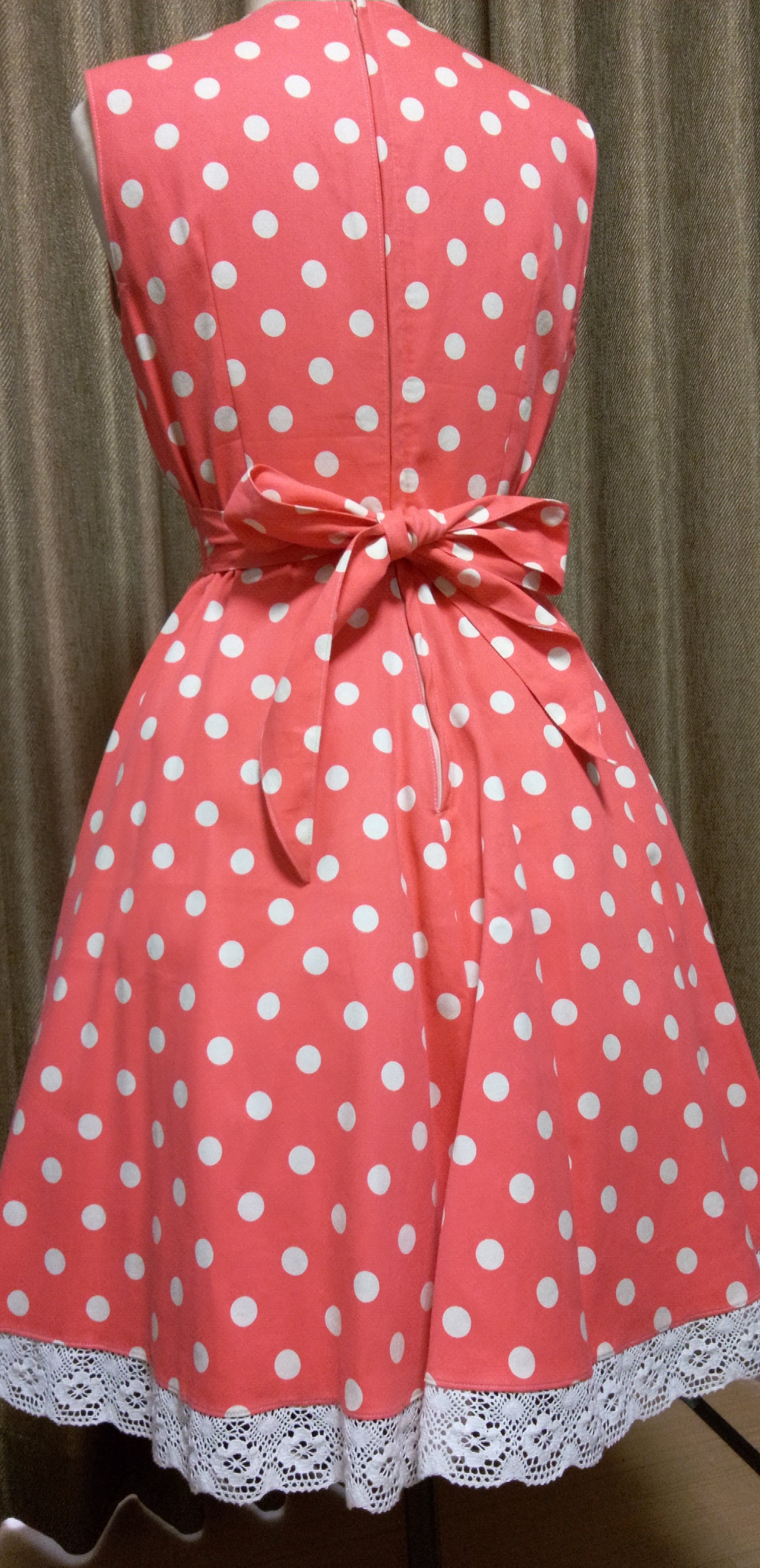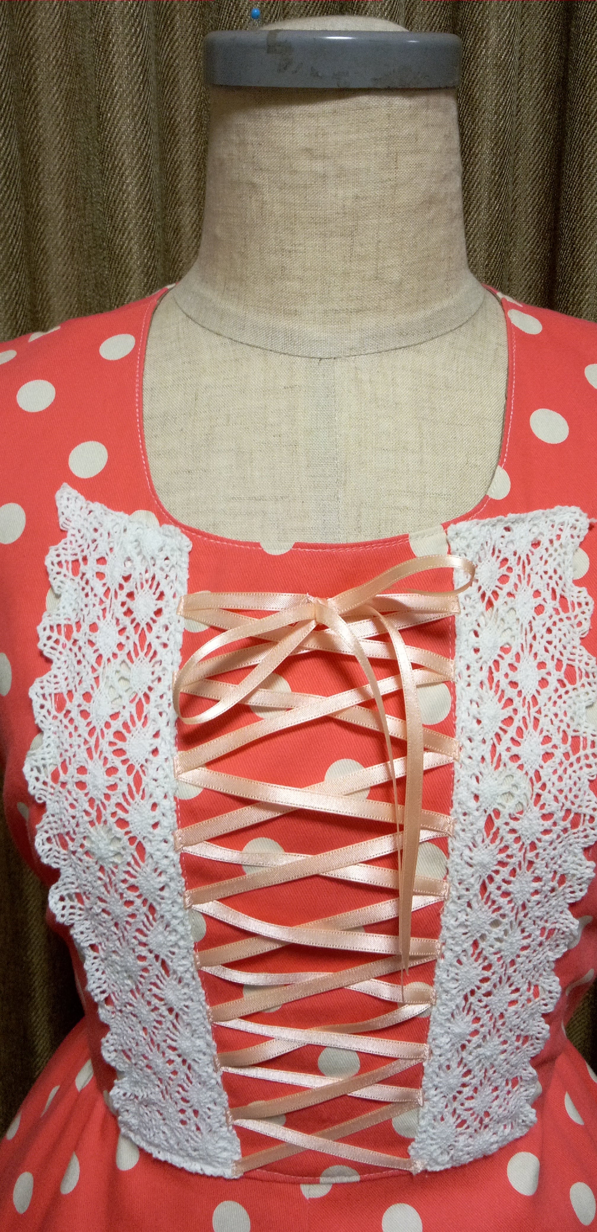 サイズはB88W68スカート丈53 オレンジドット柄裏地付きです。 綿ツイル生地 色は少しおさえた色になります。 セール商品です。 パニエは付属しません。